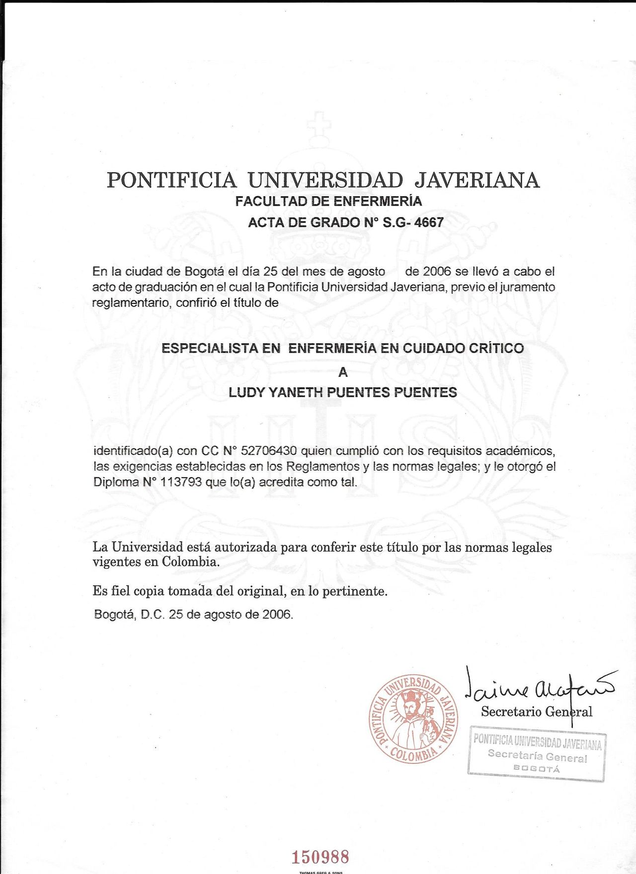 Soy enfermera profesional con formación especializada en cuidado intensivo, auditoría en salud y maestría en gerencia. Cuento con experiencia en atención clínica, seguridad del paciente y acompañamiento integral desde una mirada humana y responsable.